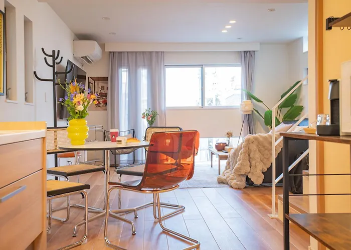 Among the self-catering amenities provided is an equipped kitchen with an electric kettle, a refrigerator, and kitchenware. Kanamecho tube station is a few moments from the accommodation.